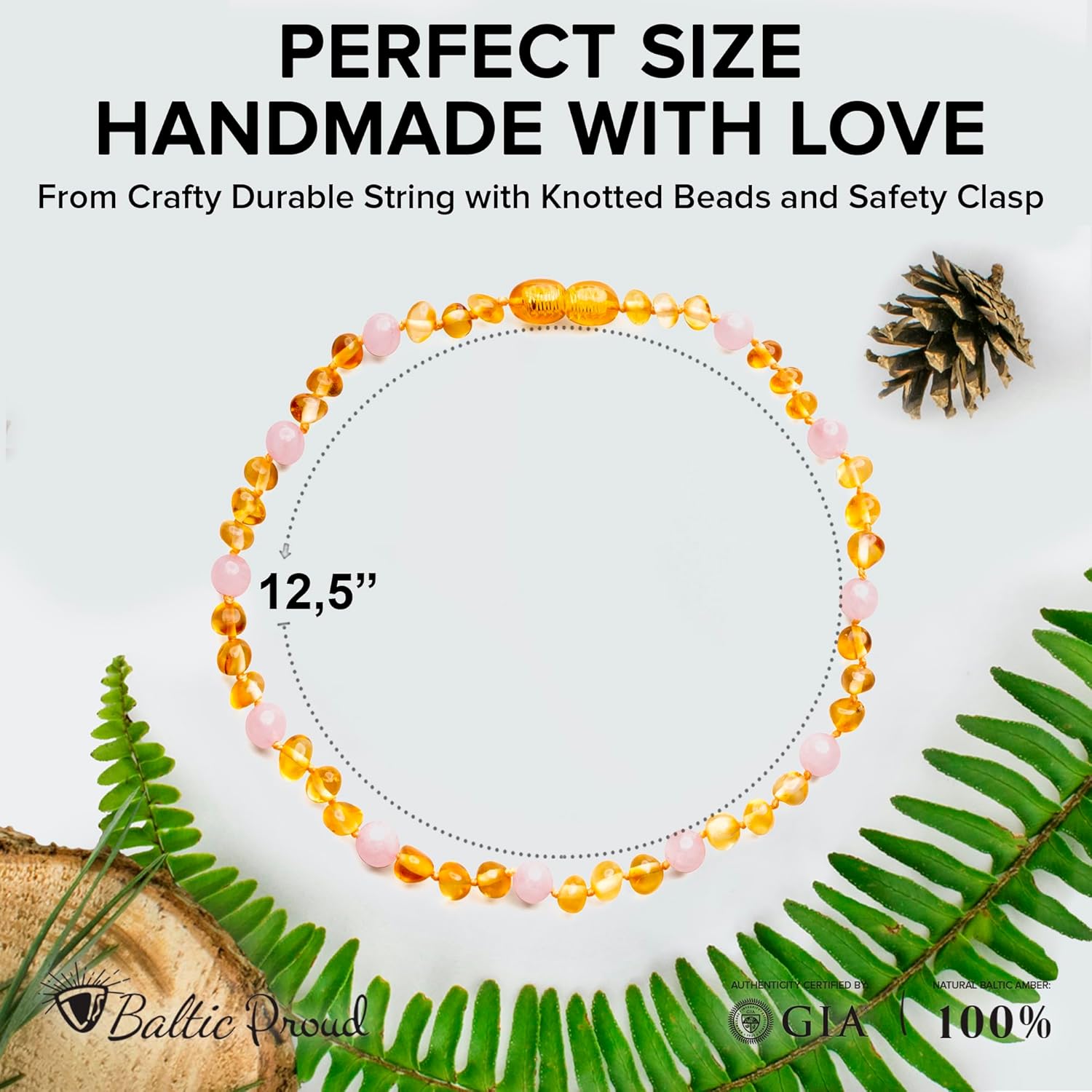 SAFE TO WEAR. “baby-sized” knotted beads and a screw clasp make the amber necklace durable and safe to wear. Do not use it as a replacement for teething toys or teethers.