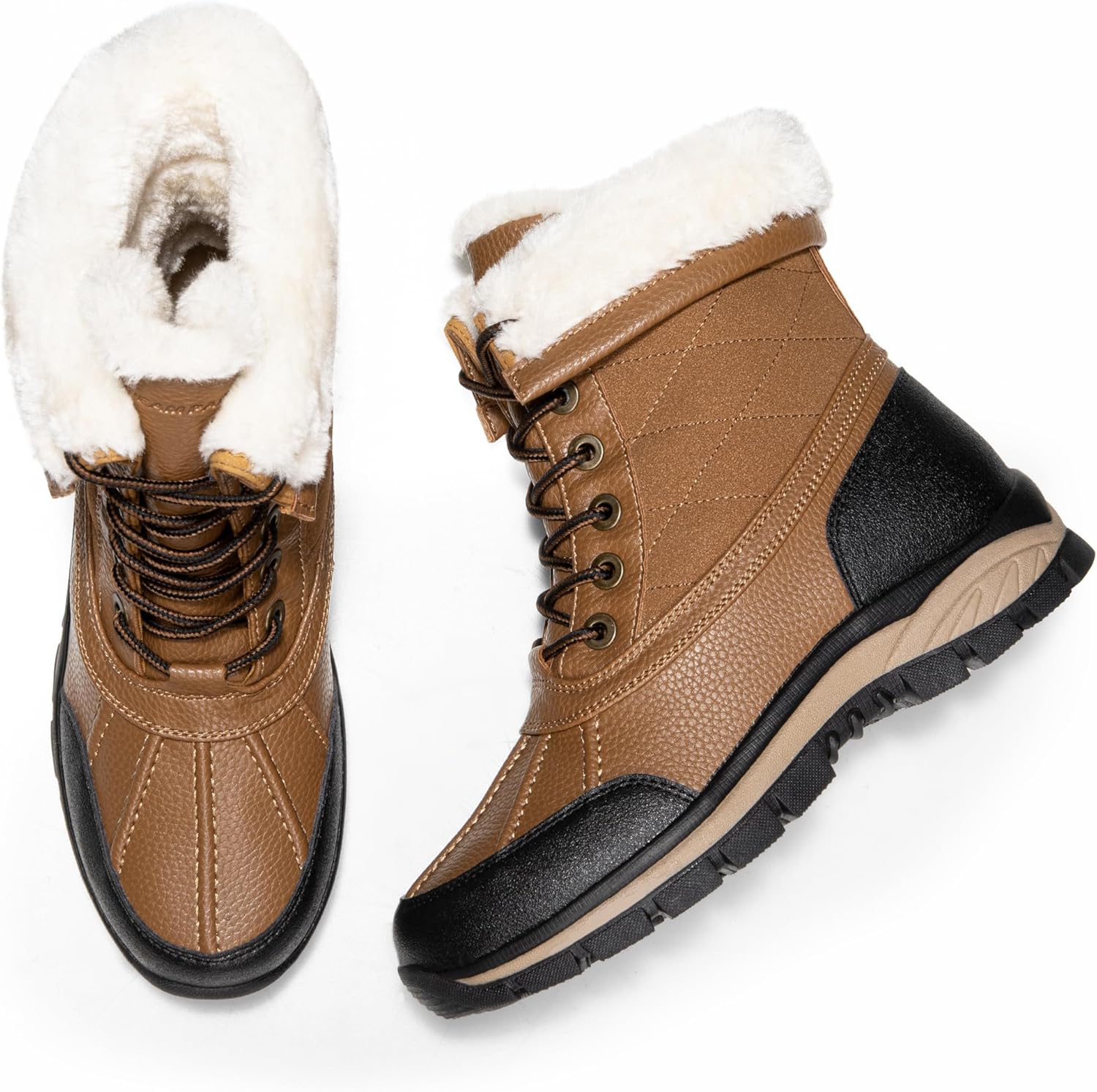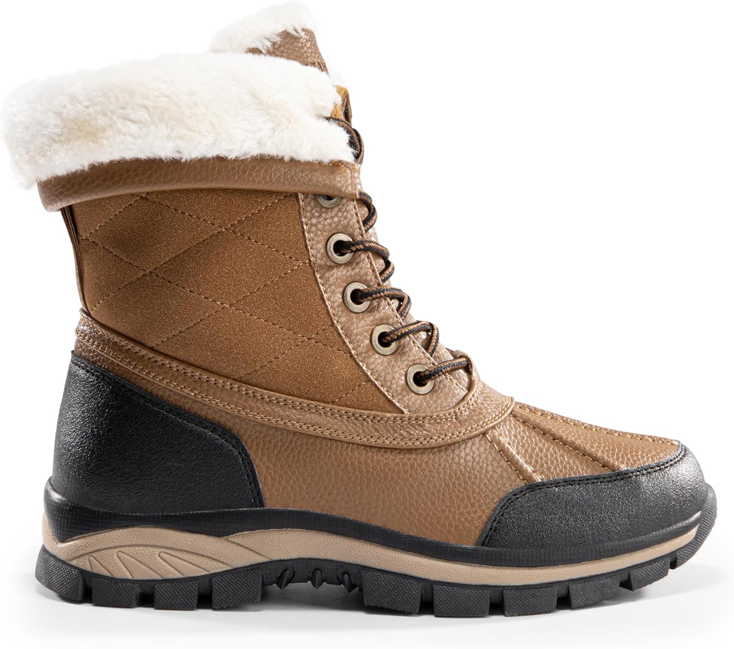 DREAM PAIRS Snow Boots for Women Waterproof Mid Calf Lace Up Duck Boots Warm Faux Fur FuzzyGo Bold Winter Boots for Outdoor