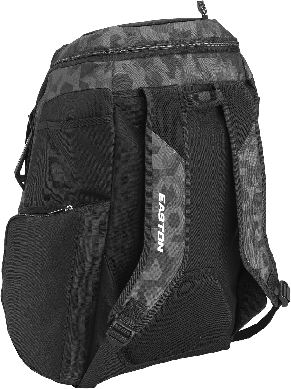 2022 Easton Walk-Off NX BackpackFeatures * Extra-wide mouth opening provides easy access to main compartment * Unique hex-grid tarpaulin helmet holder allows for external storage * Gear Klipa,, on external sides hold cleats, ball gloves, batting gloves or other gear * 2 full-length bat sleeves protect bats in travel to and from the field * Expandable mesh pockets accommodate oversized water bottles and more * Front personal pocket keeps valuables within reach but out of sight * Long lasting YKKA zipper used on main compartment * Main opening flap designed for team embroidery * Padded back and shoulder straps for comfort * Fence hook tucks away when not in use * Dimensions: 21″ H x 13″ W x 10.5″ D * Weight: 2.3 lbs Please Note: The products on this page may only be shipped within the United States.External Helmet HolderUnique hex-grid tarpaulin helmet holder allows for external storage.Extra-Wide Mouth OpeningExtra-wide mouth opening provides easy access to main compartment.Padded Back And StrapsPadded back and shoulder straps for comfort.