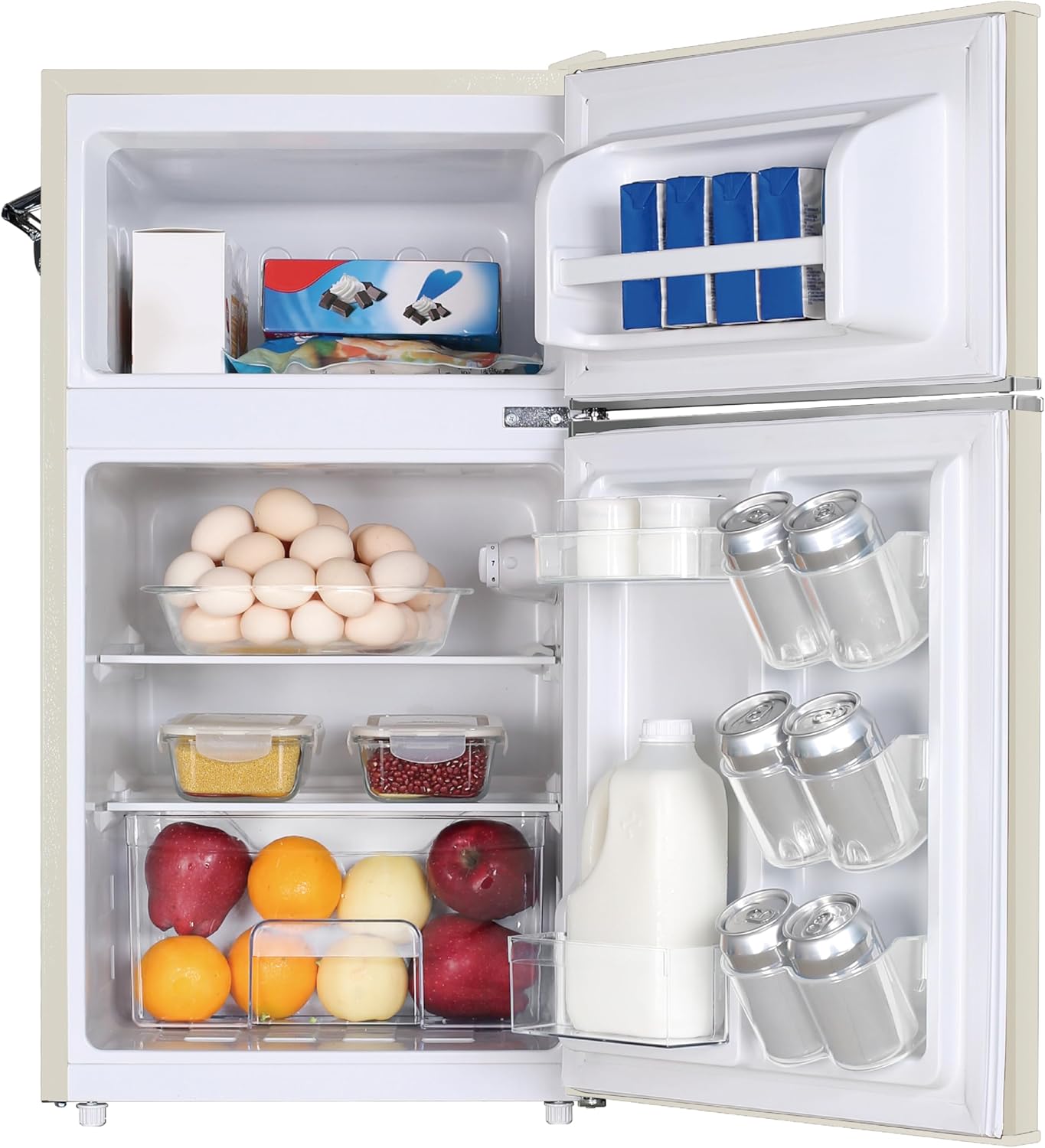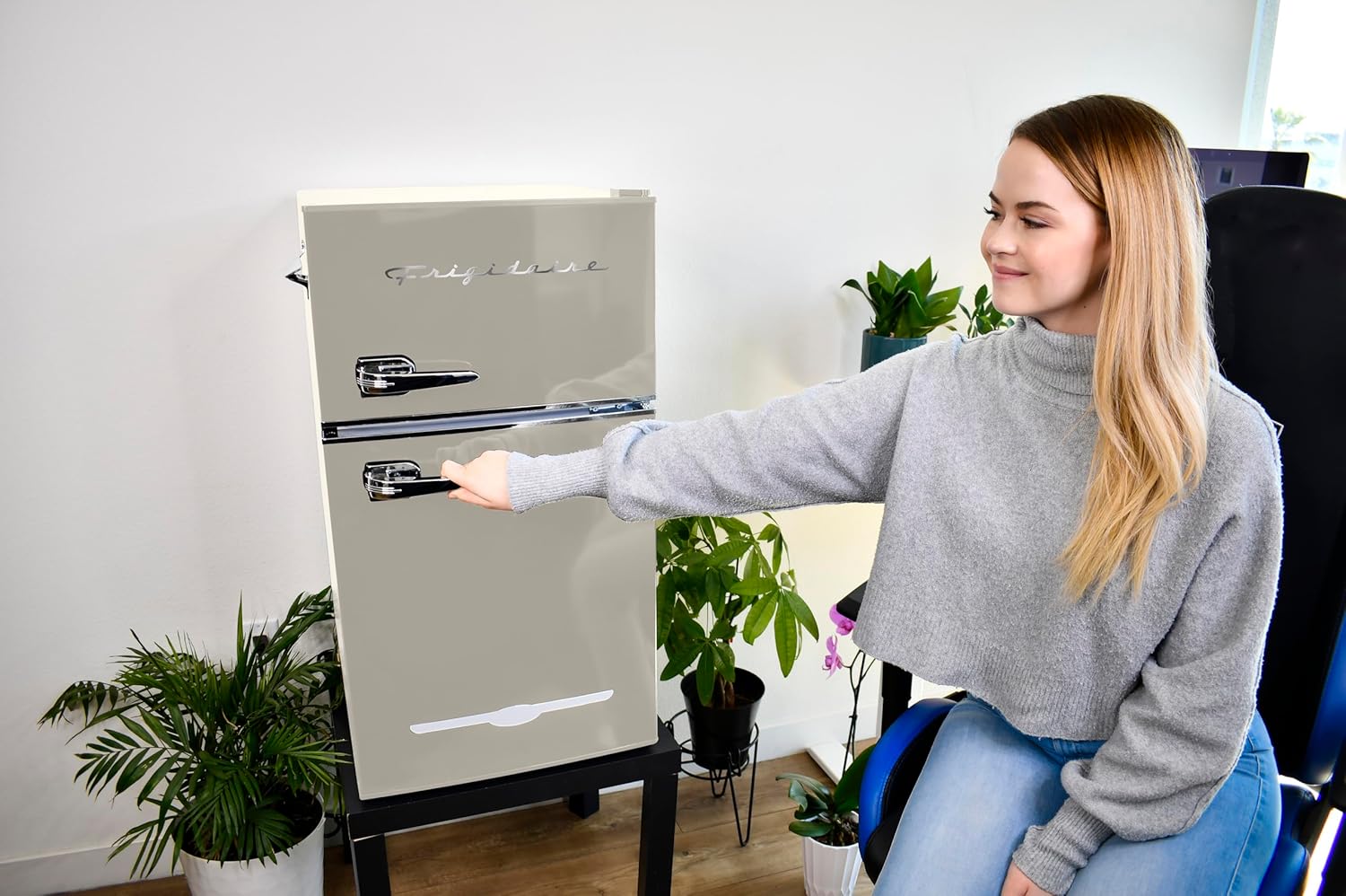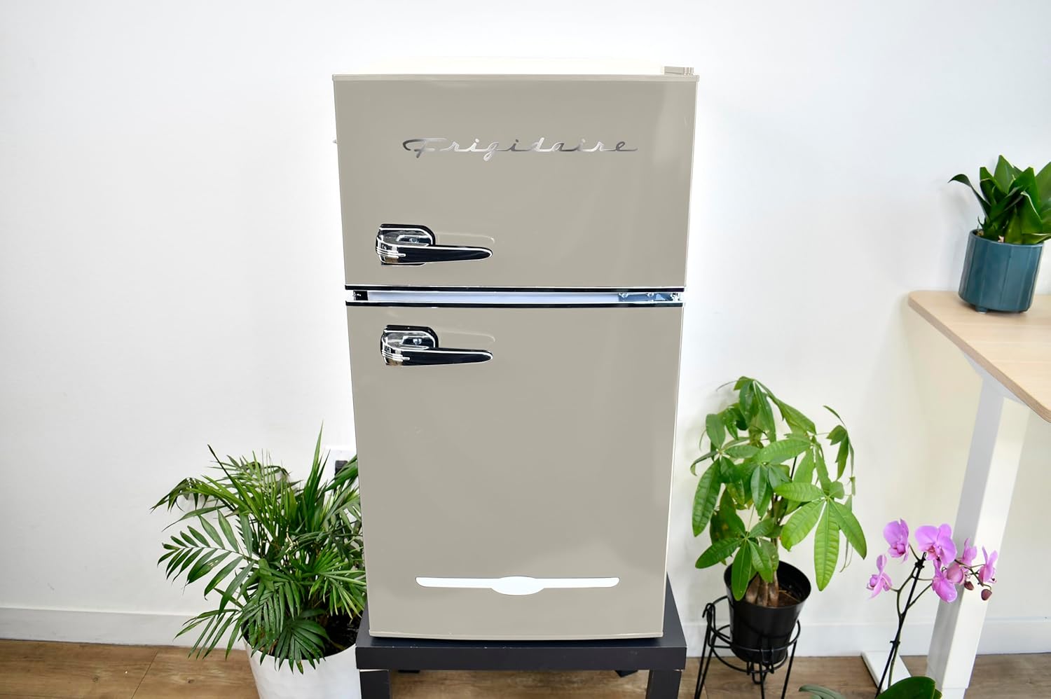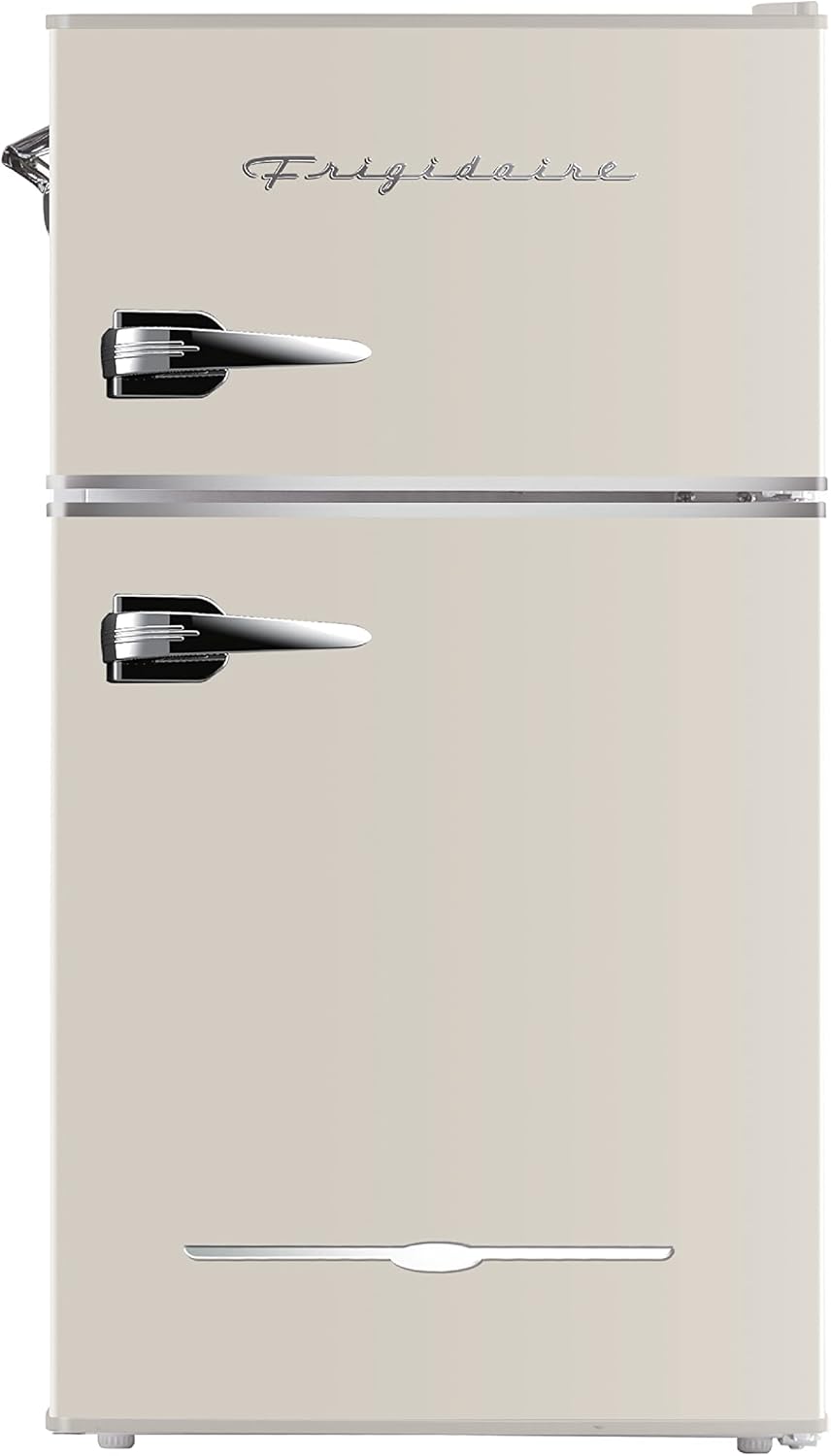 Frigidaire EFR840-Cream EFR840 Retro Mini Fridge with Freezer & Side Bottle Opener-Small 2 Door Refrigerator for Office Bar or College Dorm Room-3.1 Cu Ft – 19””D x 20.5″ W x 33.5″ H (Cream)