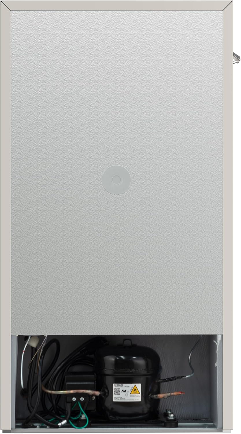 SLEEK FINISH: Featuring a sleek and durable platinum design with chrome trim, this small fridge freezer adds an upscale retro look that will elevate your space. Its compact size makes it perfect for your office, bedroom, dorm room, garage, or cabin.