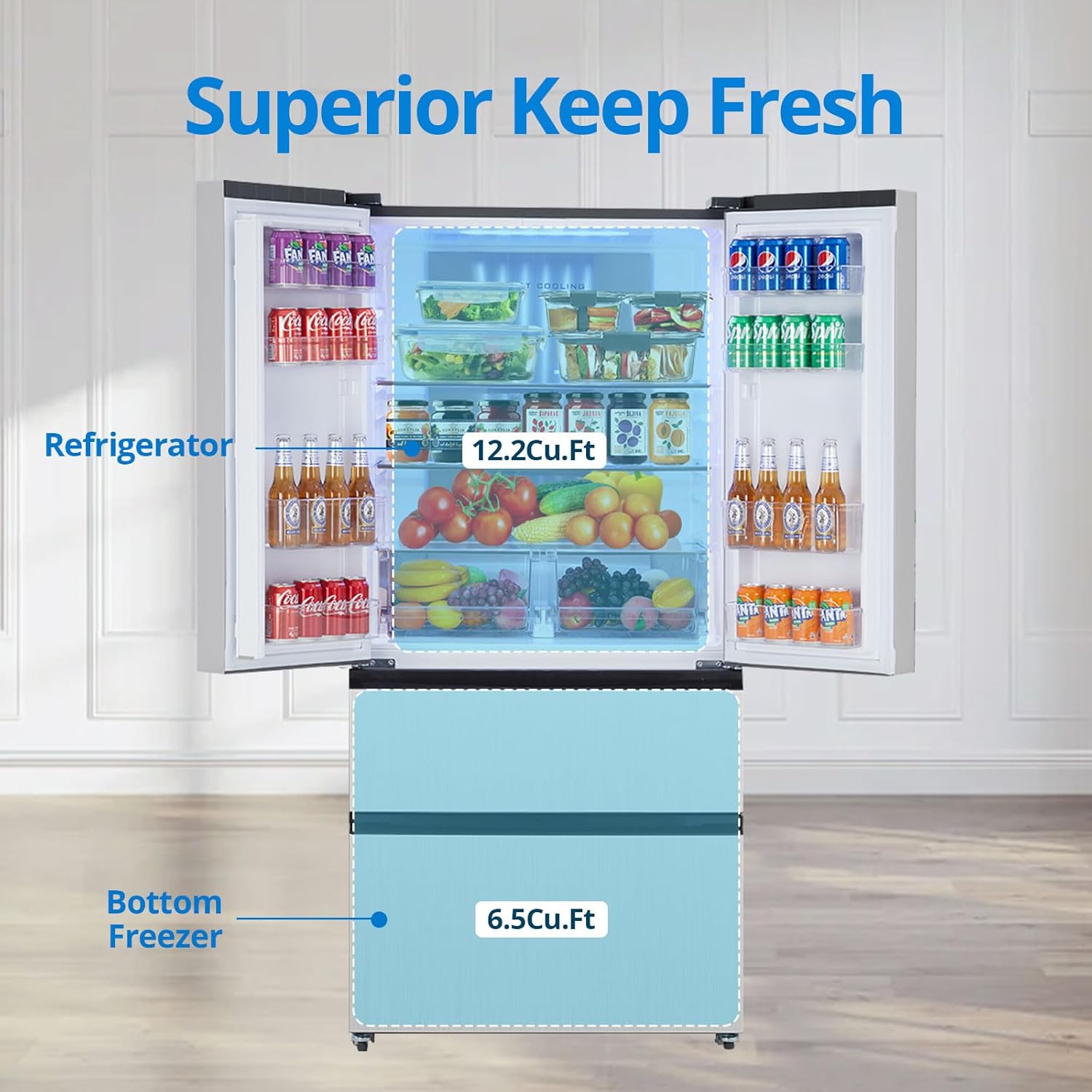 French Door Refrigerator – 18.8Cu. Ft Large Capacity Kitchen Fridge