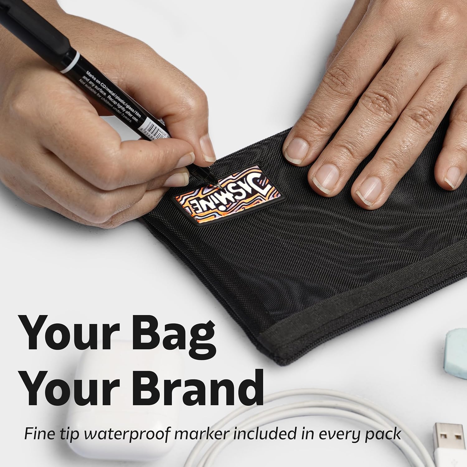 Additionally, we provide a waterproof marker to help you personalize the tab on each bag.