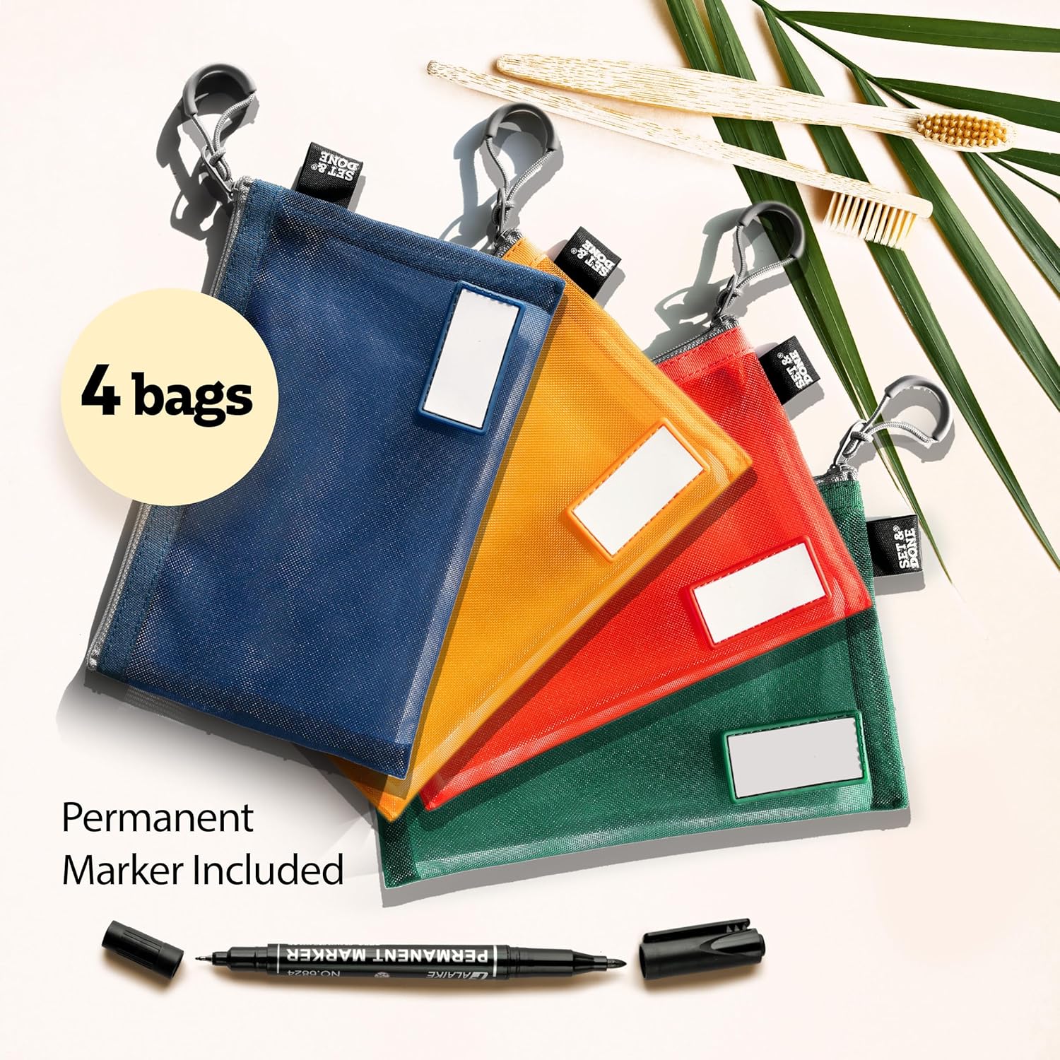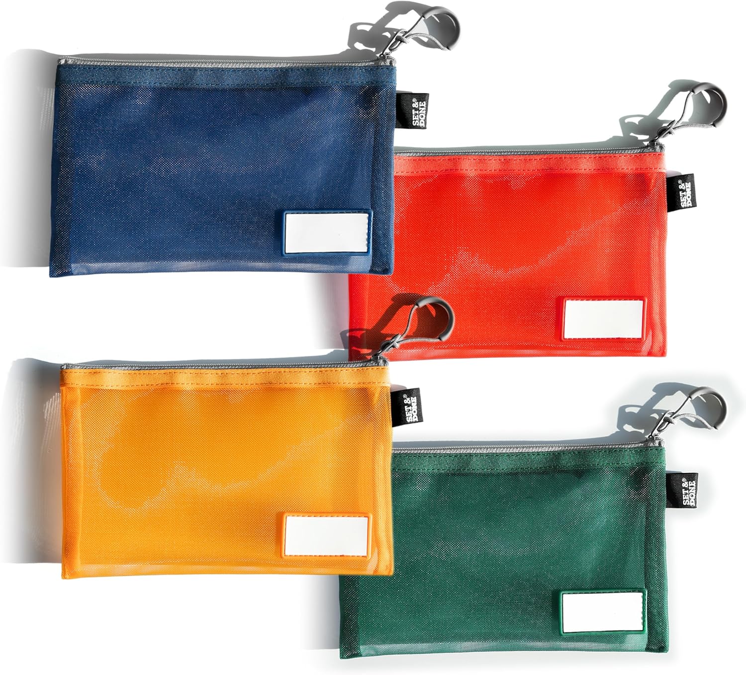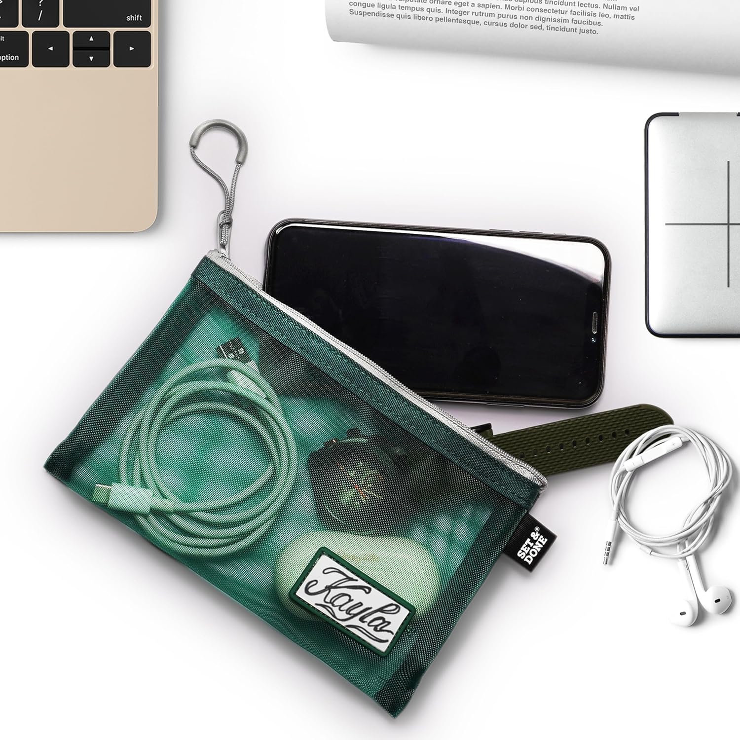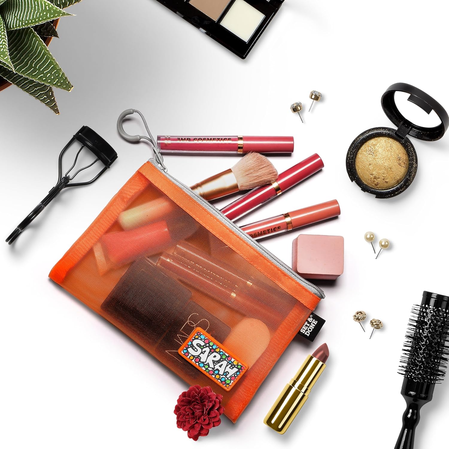 Set & Done – Zipper Mesh Bags 7″x 5″ Size S Clear Pouch for Storage Small Items Makeup Accessories & Office Organizers, Travel Easy