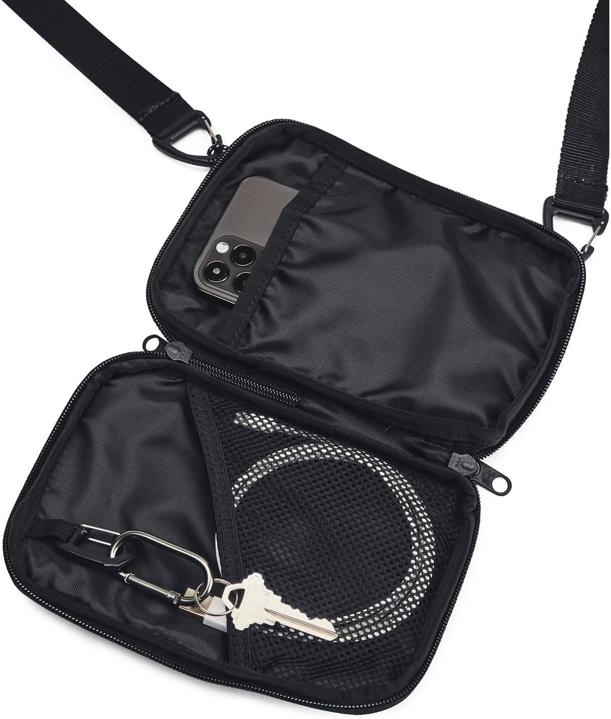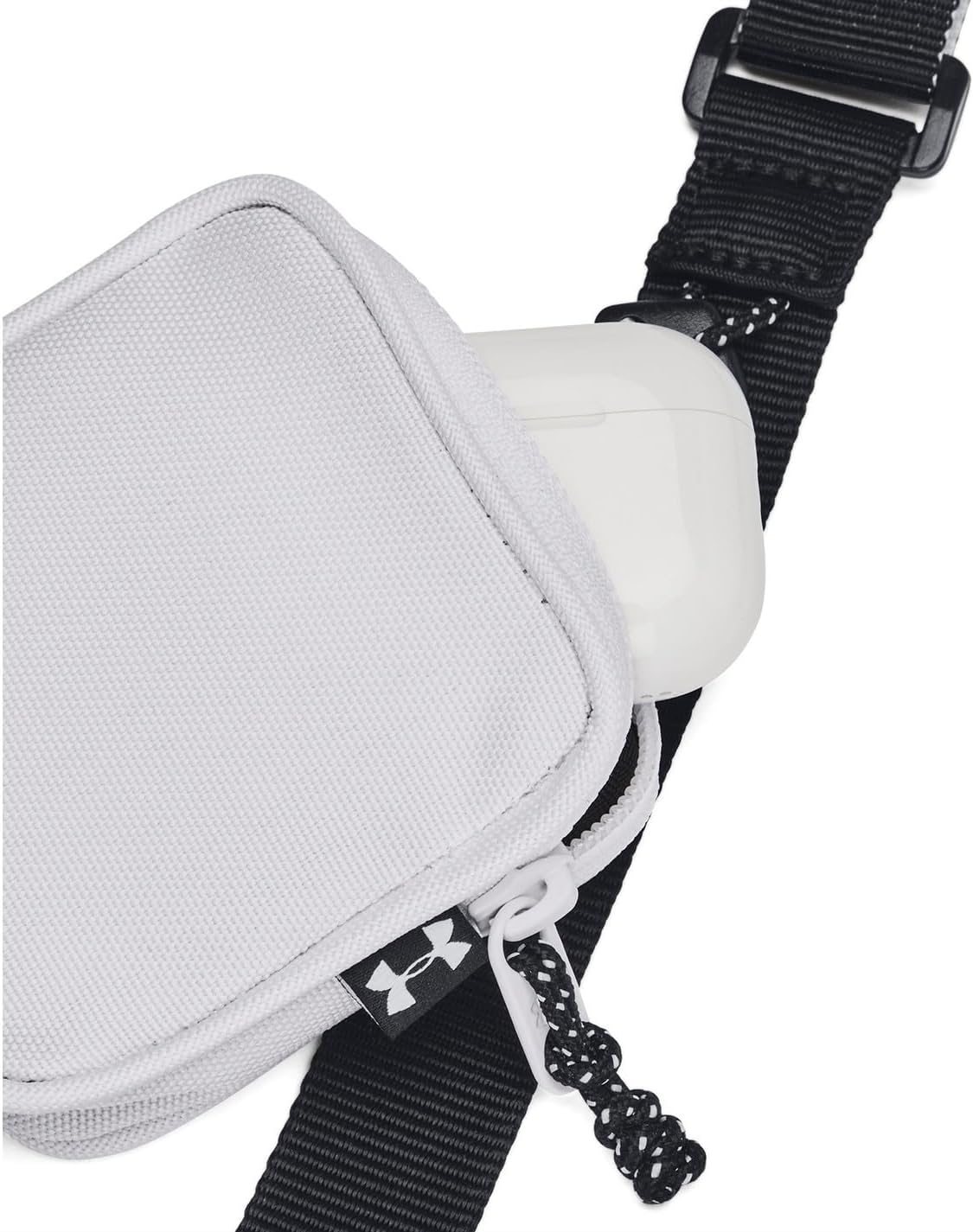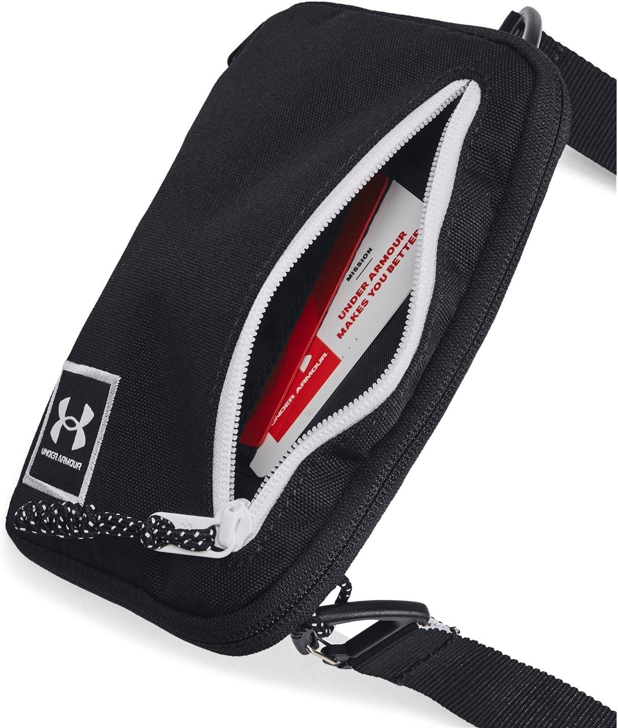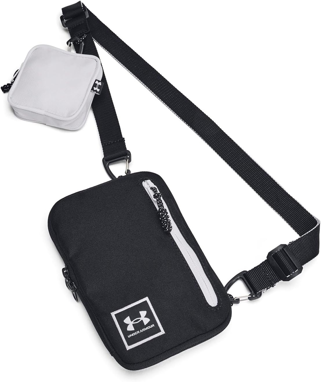 One of our most popular backpacks just got better. The swivel clip can attach to a bunch of different places, turning it from a traditional backpack to a crossbody, a waist pack, or a chest pack in an instant.. Water-resistant UA Storm technology keeps your stuff dry. Wear 3 ways—crossbody, chest pack or waist bag—using swivel clip & multiple attachment points. RFID-blocking pocket on back for credit card theft protection. Zippered main compartment with internal organization & zippered front pocket with card slip pockets. Small removable bag fits AirPods case. Adjustable, removable webbing strap. Dimensions When Full: 4.7″”W x 0.6″”H x 7.1″”L. Volume: 1 L. 100% Polyester.
